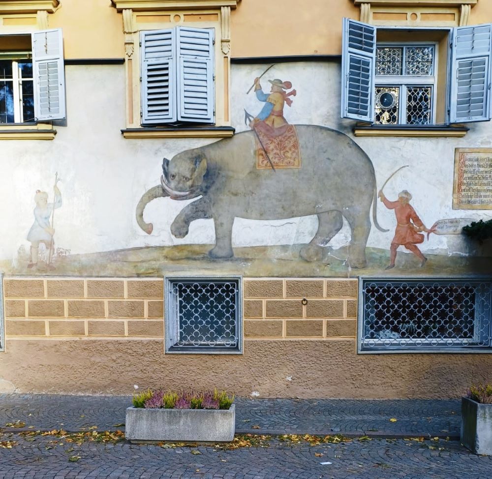L’edificio del XV secolo che oggi ospita l’Hotel Elephant presenta in facciata un curioso affresco di un elefante frutto più della fantasia degli artisti che di una reale conoscenza dell’animale. Ma un elefante arrivò veramente a Bressanone anche se solo di passaggio verso Vienna. Infatti, nel 1551, il corteo nuziale di Massimiliano d’Austria e di Maria di Spagna, fu accompagnato dall’elefante indiano, dono di nozze del re Giovanni III del Portogallo, a cui fu dato il nome di Soliman.